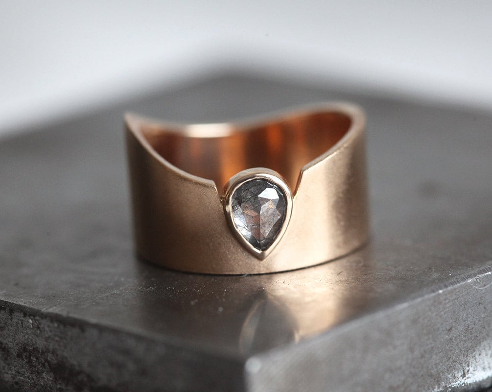 Statement Natural Diamond Ring Grey Pear Rose Cut Diamond Etsy