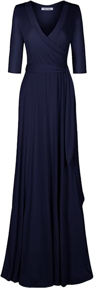 Bon Rosy Women S Madeinusa 3 4 Sleeve V Neck Solid Maxi Wrap Dress