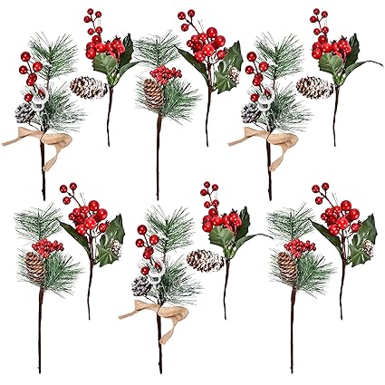 Amazon Com Gift Boutique 12 Red Berry And Pine Cone Christmas Picks