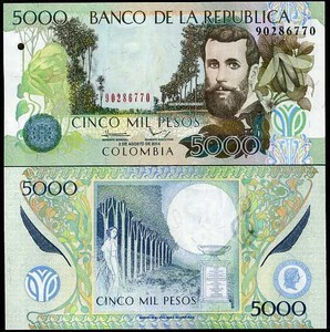 Colombia 5000 5 000 Pesos 2 Aug 2014 P 452 Unc Ebay
