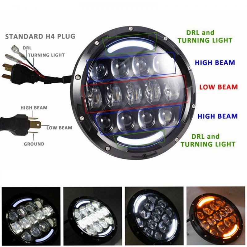 2019 7 Inch 105w Round Led Projector Headlights With Drl Hi Lo Beam
