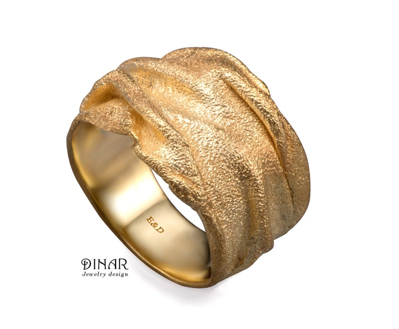 Contemporary Wide Folded 14k Gold Band Thick Organic Sand Etsy