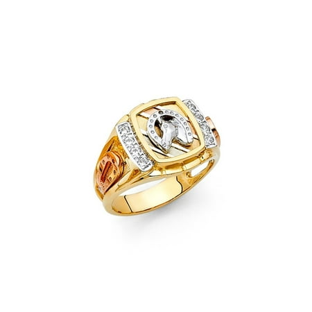 Paradise Jewelers 14k Solid Yellow Gold Cubic Zirconia Men 15mm