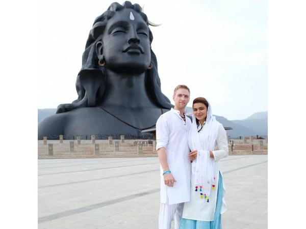Aashka Goradia Brent Goble Visit Sadghuru S Adiyogi Statue As They