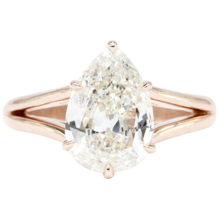 Handmade Rose Gold Mounted 2 36 Carat Pear Shaped Diamond Ring At