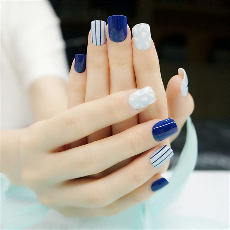 Fake Nails Pentagram And Stripes Pre Designs Kids False Nails Tips