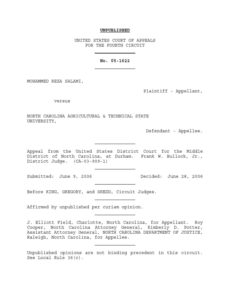 Salami V North Carolina Agricultural 4th Cir 2006 Summary