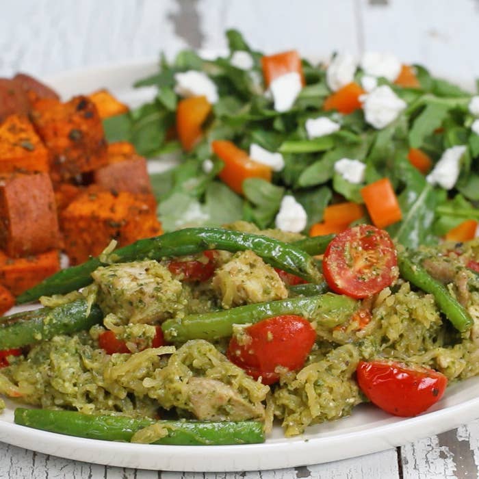 Make This Healthy Pesto Chicken Spaghetti Squash This Week