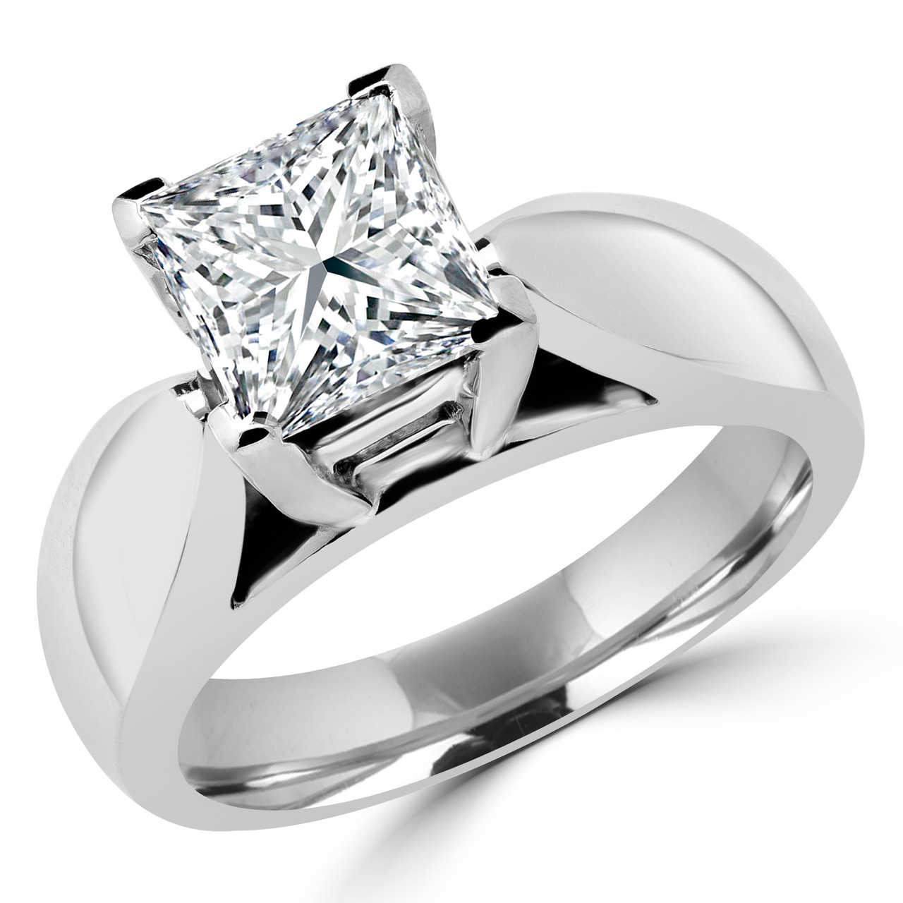 14k White Gold 41ct Princess Cut Diamond Wide Band Ring James