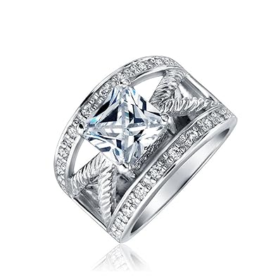 Bling Jewelry Art Deco Style 3 Ct Open Wide Band Princess Cut Square